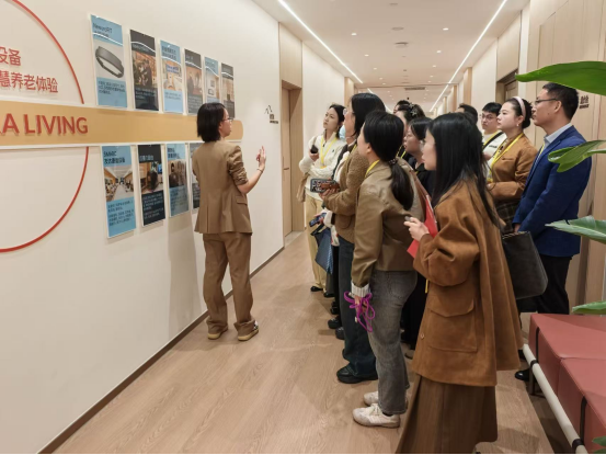 参观结束后,单院长与颐享家园南京社区总经理陈峥霞、资深照护经理徐雯颖、南京社区康养规划负责人孙亚就未来校企合作可能展开交流讨论。单院长简要介绍了学院的学生培养情况、未来发展计划,以及在教学实践、学生实习和科研合作等方面的潜在需求。他表示,希望通过校企合作,为学生提供更多实践机会,同时推动学院教学与科研水平的提升,更好地服务于康养行业的人才需求。