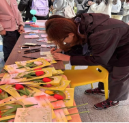 活动现场,康养学院心理委员会的成员们化身“心灵信使”,热情引导同学们参与活动。他们将心理健康教育融入一束束鲜花之中,让抽象的心理关怀化作触手可及的美好体验。通过“一个故事,一朵花”的温馨交换,让同学们在这个春天收获一朵意义非凡的鲜花。